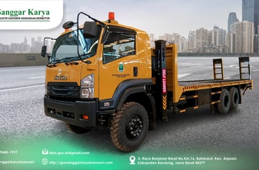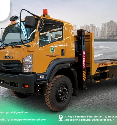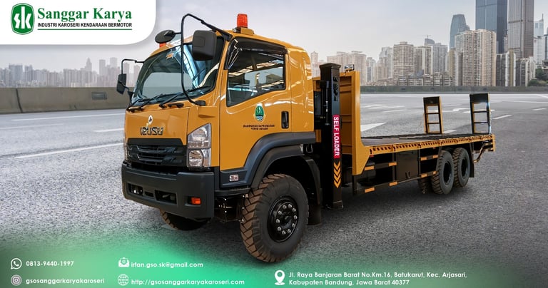 Karoseri Sanggar Karya menghadirkan Truck Self Loader Besar dengan desain tangguh, multifungsi, dan efisien. Kendaraan ini dirancang untuk mendukung kebutuhan pengangkutan alat berat dan barang berkapasitas besar, ideal untuk berbagai sektor industri.