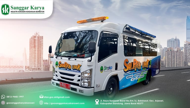 Karoseri Sanggar Karya menghadirkan Mobil Layanan Perizinan, kendaraan khusus yang dirancang untuk mendukung pemerintah dan lembaga dalam memberikan pelayanan perizinan secara langsung kepada masyarakat. Dengan desain modern dan fasilitas lengkap, mobil ini menjadi solusi terbaik untuk pelayanan yang cepat, praktis, dan profesional.